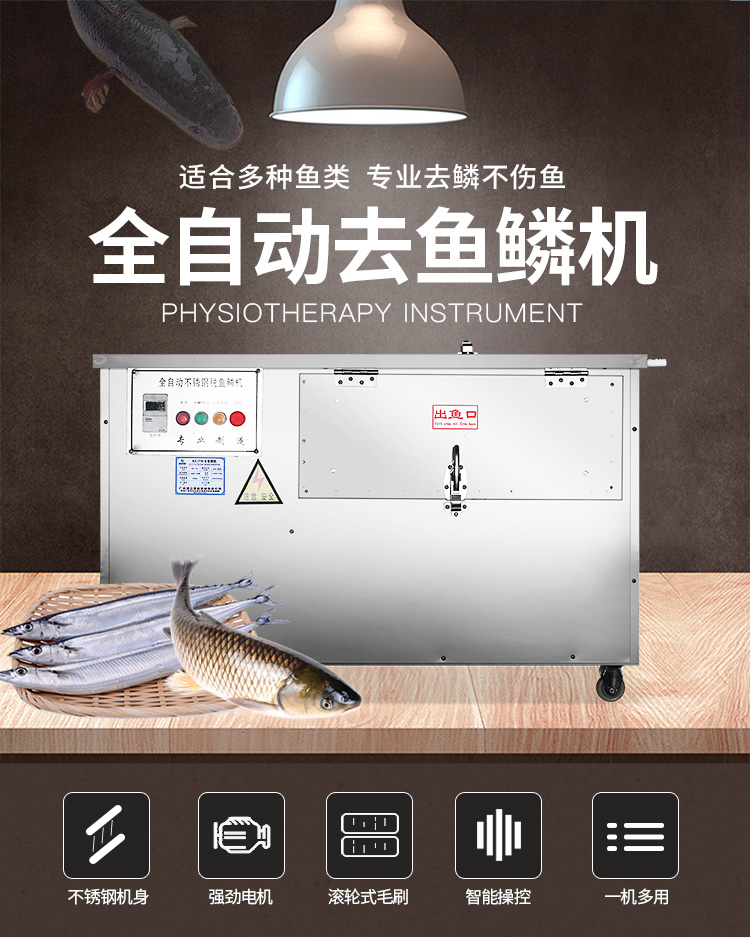 自動(dòng)魚鱗機(jī)廣泛應(yīng)用于魚類銷售市場(chǎng)、飯店、魚類加工廠等等,本產(chǎn)品不會(huì)對(duì)魚頭、魚尾、魚鰭造成損傷。該機(jī)器利用旋轉(zhuǎn)效應(yīng),使魚在運(yùn)動(dòng)中去鱗,去鱗干凈,對(duì)魚的加工去鱗屬國(guó)內(nèi)外首創(chuàng),主要指標(biāo)達(dá)到國(guó)際先進(jìn)水平。